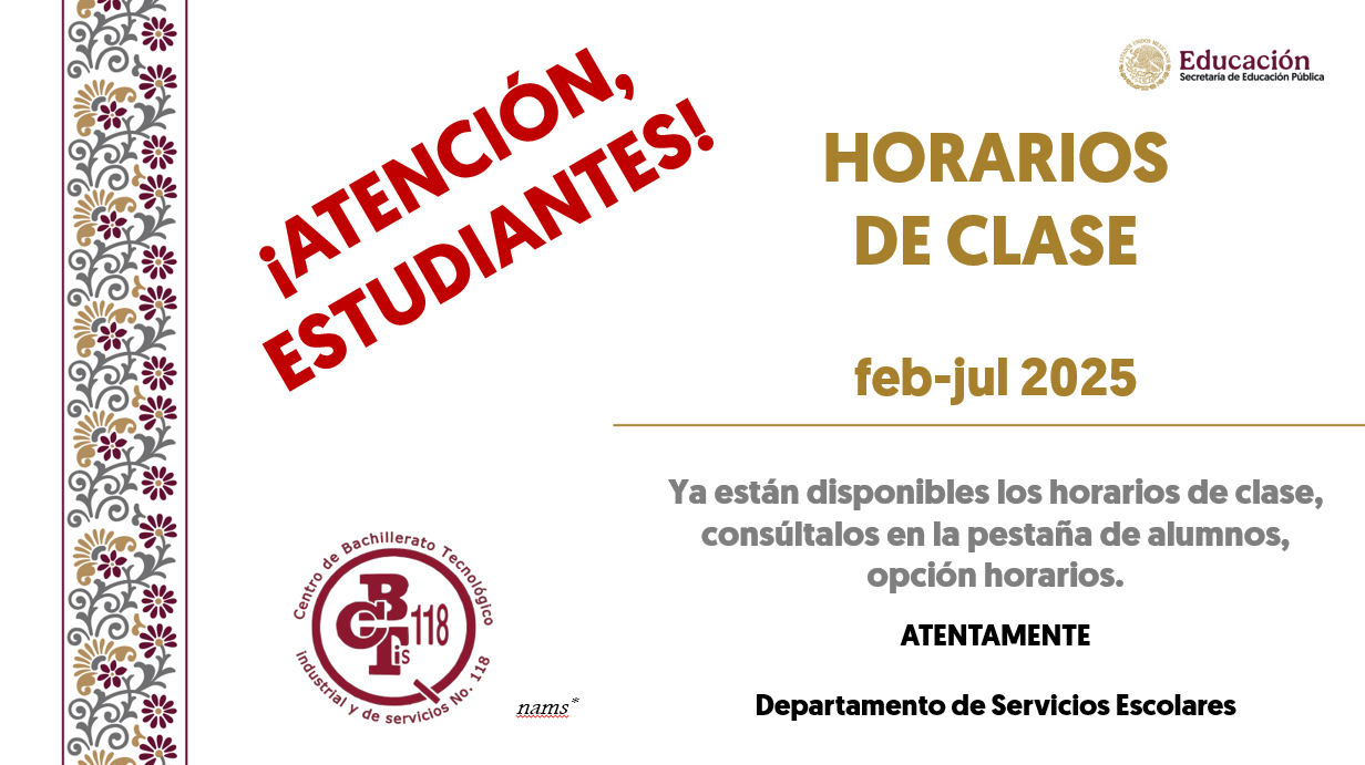 Ya están disponibles los horarios de clase para este semestre "feb-jul 2025".