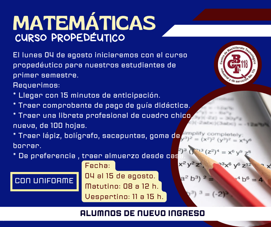 El 04 de agosto iniciamos el curso propedéutico para alumnos de nuevo ingreso.