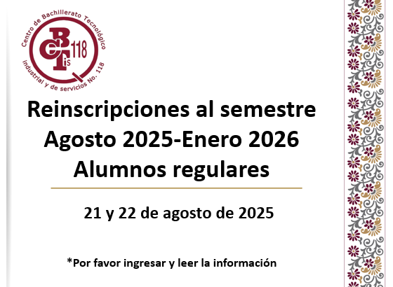 Presentarse únicamente el alumno con su uniforme completo y credencial de estudiante del CBTis 118.