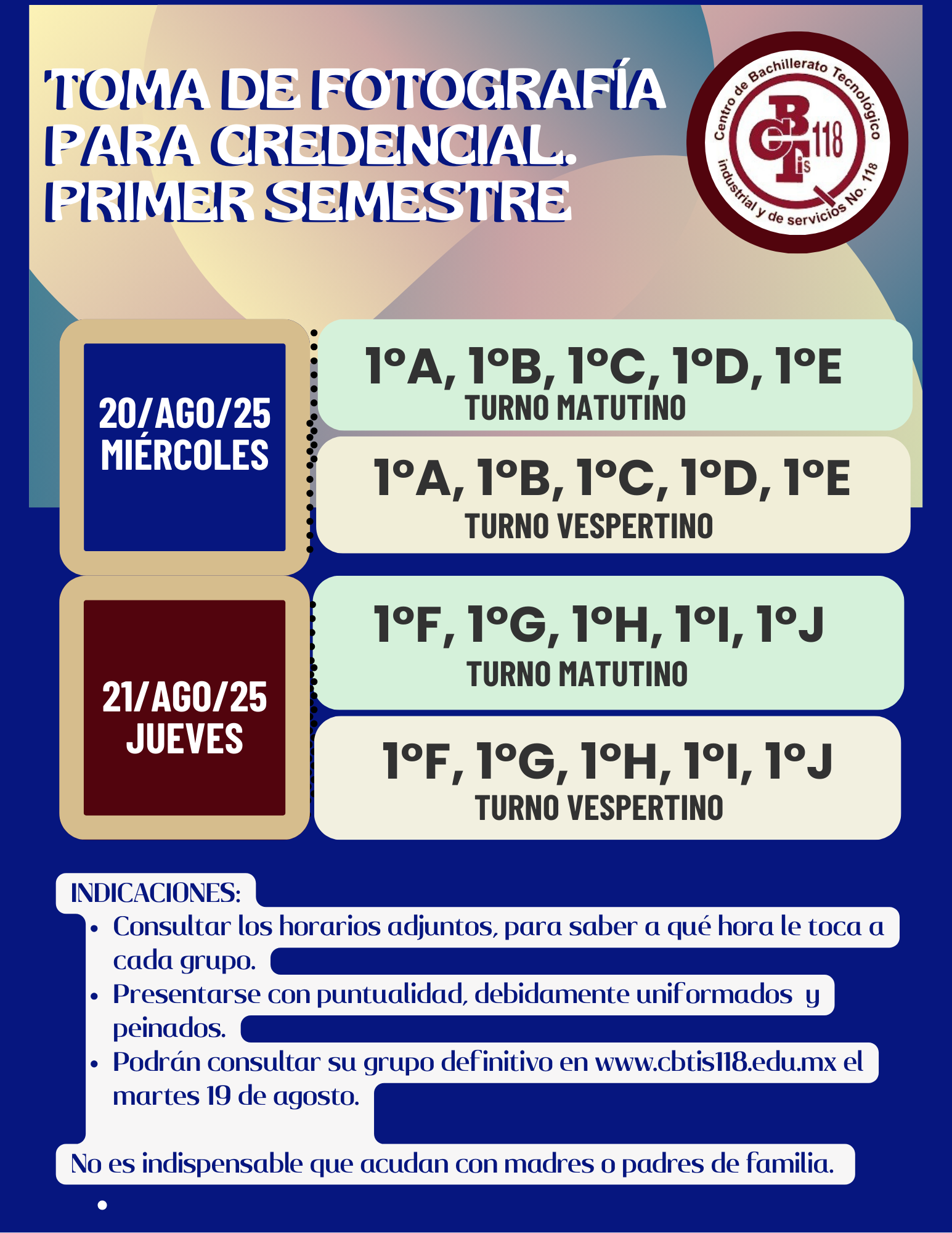 PRIMER SEMESTRE: TOMA DE FOTOGRAFÍA PARA CREDENCIAL