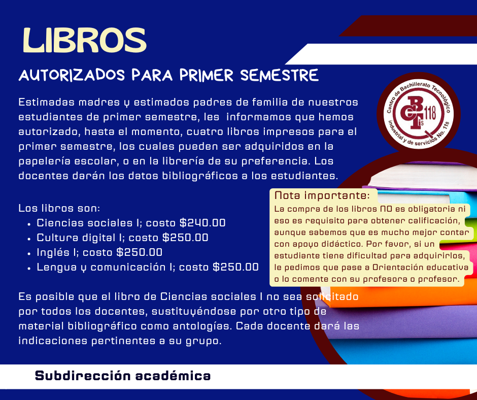 Los libros que han sido autorizados son apoyo didáctico para nuestros estudiantes de primer semestre; fueron seleccionados por el colegiado de profesores de la asignatura, buscando principalmente el aprendizaje de los alumnos. Los docentes tienen el encargo de utilizarlos efectivamente en la clase, sin obligar a sus estudiantes a comprarlos, buscando estrategias para que se realicen las tareas de dicho libro.