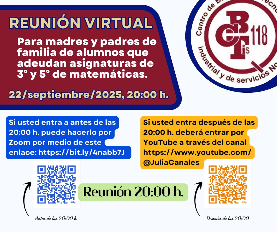 Reunión Virtual Para Papás, Mamás O Tutores Y Alumnos Que Adeudan Materias De Matemáticas De 3er Y 5to Semestr