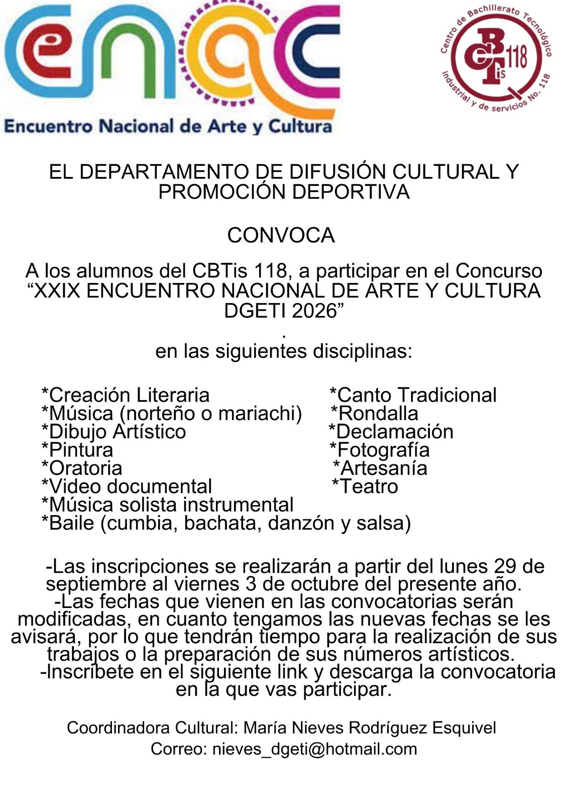 CONVOCATORIAS PARA PARTICIPAR EN EL ENCUENTRO NACIONAL DE ARTE Y CULTURA