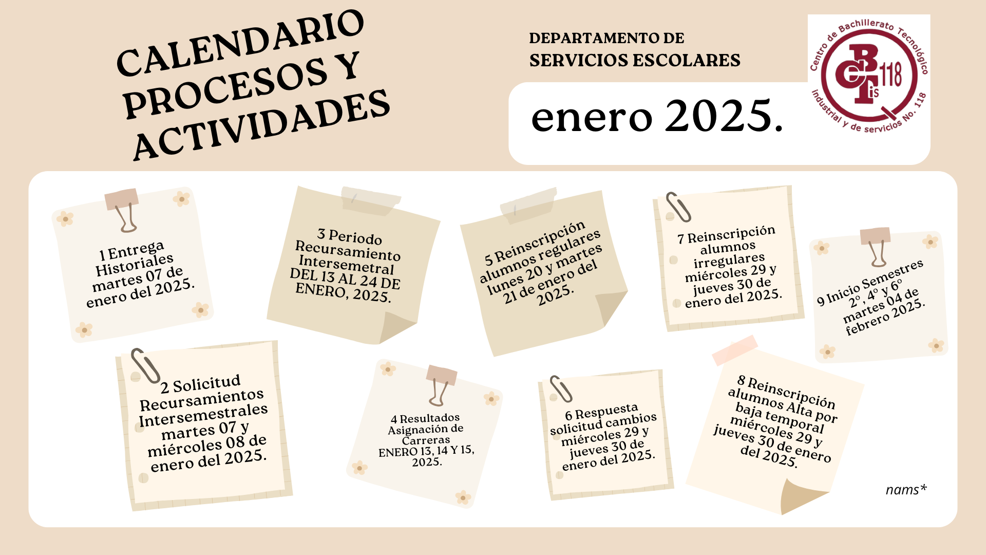 Esperar calendario en la página oficial CBTis 118. www.cbtis118.edu.mx